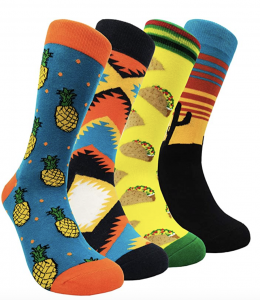 We can buy our sons white socks any day, but when Christmas comes around, it’s time to search for the craziest socks out there!